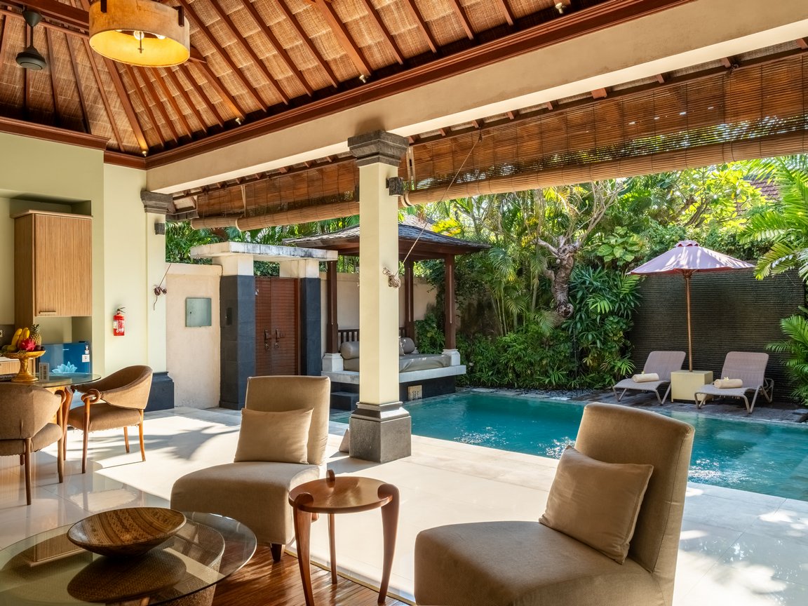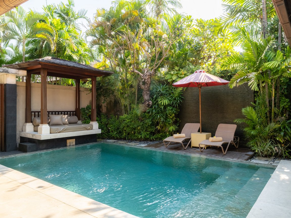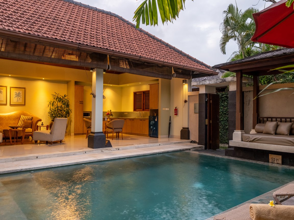 Villa Elegant in Seminyak, Bali offers a spacious villa with one bedroom, a living room, and a private pool. Additionally, the property features a sun terrace, garden, and a year-round outdoor swimming pool.
